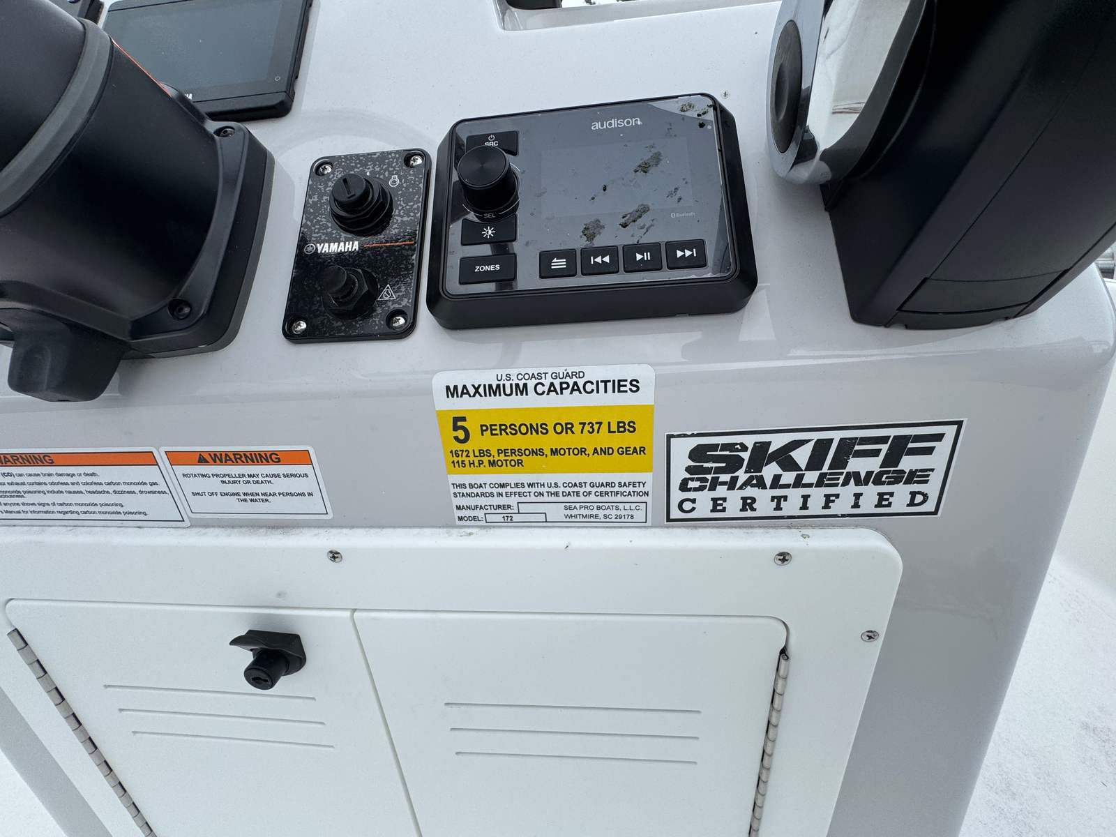 Owning a Sea Pro 172 Bay means embracing a lifestyle of fun, relaxation, and adventure. This Bay Boat is perfect for social gatherings, family outings, and solo escapes alike. The spacious layout and thoughtful design make it easy to move around, whether you’re casting a line, enjoying a picnic, or simply soaking up the sun. The Platinum upholstery provides plush seating, ensuring everyone on board is comfortable throughout the day.The Sea Pro 172 Bay’s stylish appearance and modern amenities make it a joy to own and show off. Its manageable size means you can easily trailer, launch, and dock the boat, giving you the freedom to explore new waterways and destinations. The efficient Yamaha F115LB engine delivers reliable power without excessive fuel consumption, so you can spend more time enjoying the water and less time worrying about refueling.