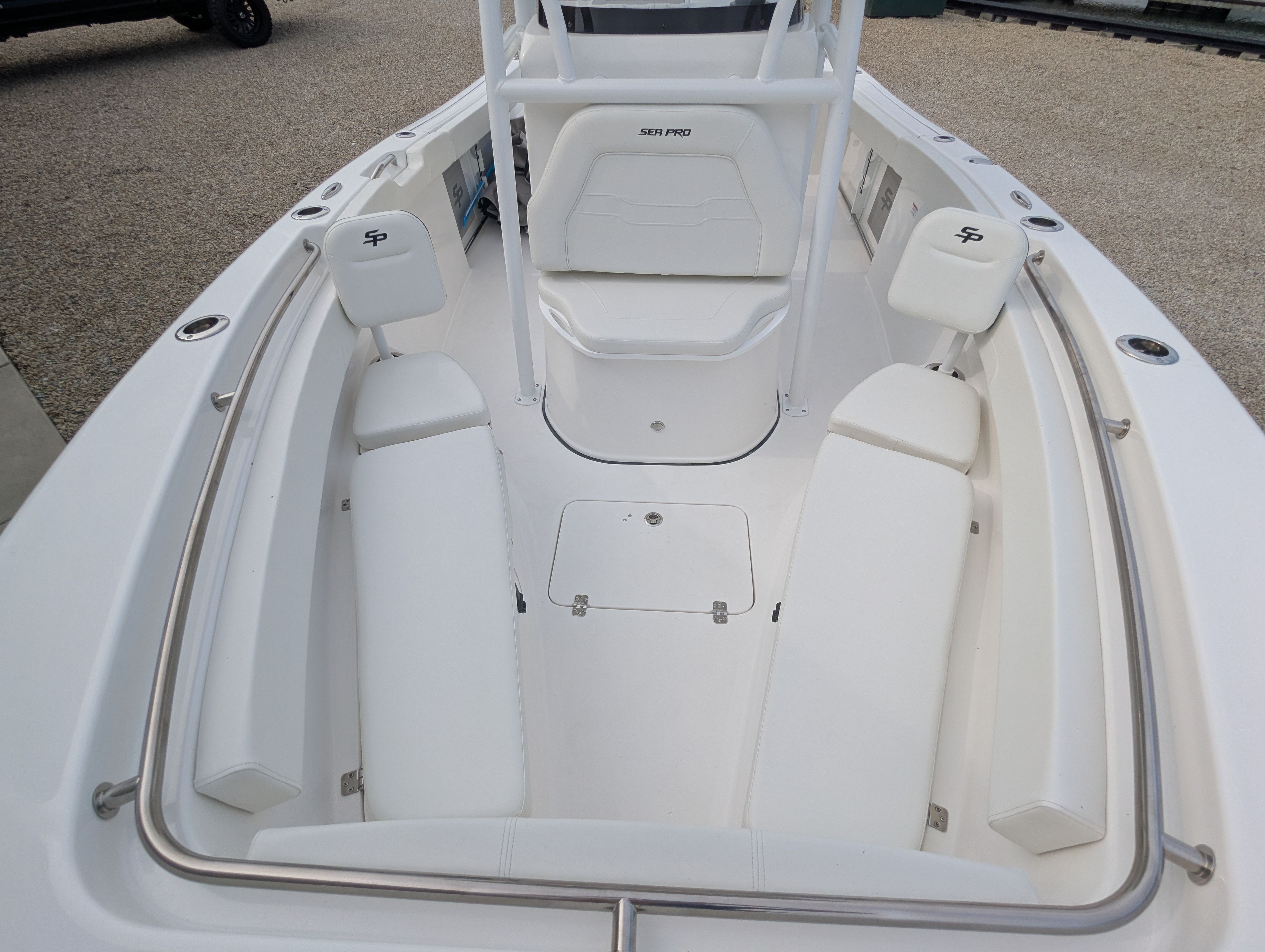 The Sea Pro 222 CC is packed with special features designed to elevate your time on the water. The fiberglass hard top T Top provides excellent protection from the sun and elements, ensuring comfort during long outings. The bow seating with removable backrest offers flexible seating arrangements, perfect for lounging or accommodating extra guests. The complete bolster package adds a layer of luxury and support, making every seat comfortable for extended trips.For added convenience, the console cover keeps your helm protected when not in use, preserving the boat’s pristine condition. The VHF Radio RS20 ensures reliable communication, whether you’re coordinating with fellow boaters or staying in touch during offshore excursions. The battery charging system (12/24 - cranking) keeps your electronics powered and ready, while the fresh water wash down makes cleaning up after a day of fishing or fun effortless.