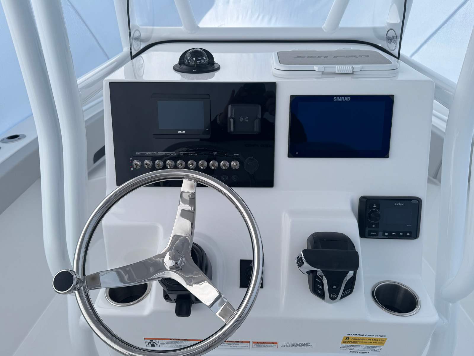 The 2026 Sea Pro 225 Flxr comes loaded with special features that elevate your boating experience. The hull and deck are equipped with a fresh water wash down and sink, making it easy to clean up after a day of fishing or family fun. Communication and safety are enhanced by the VHF Radio RS20, ensuring you stay connected wherever your adventures take you. The fiberglass hard top T-Top provides ample shade and protection from the elements, while the white powder coat adds a touch of elegance and durability.For convenience and style, the boat includes four stainless steel cup/rod holders, perfect for securing your gear or enjoying refreshments with friends. The sun shade bow, complete with two rod holders, offers additional comfort and versatility, allowing you to relax or fish in shaded comfort. At the helm, a wireless phone charger and holder keep your devices powered and accessible, while the white upholstery and Carolina Blue underside color create a fresh, inviting atmosphere throughout the vessel.