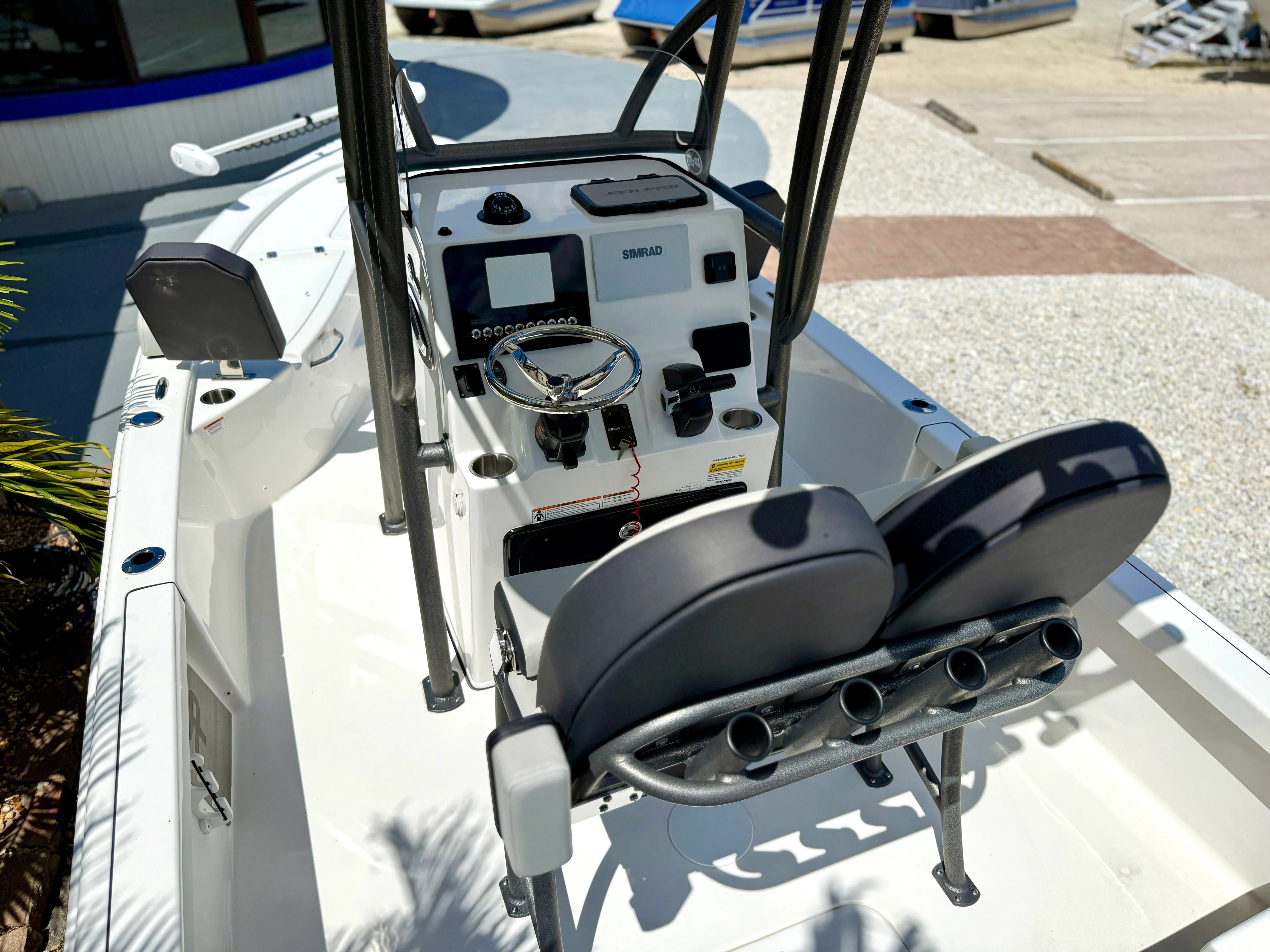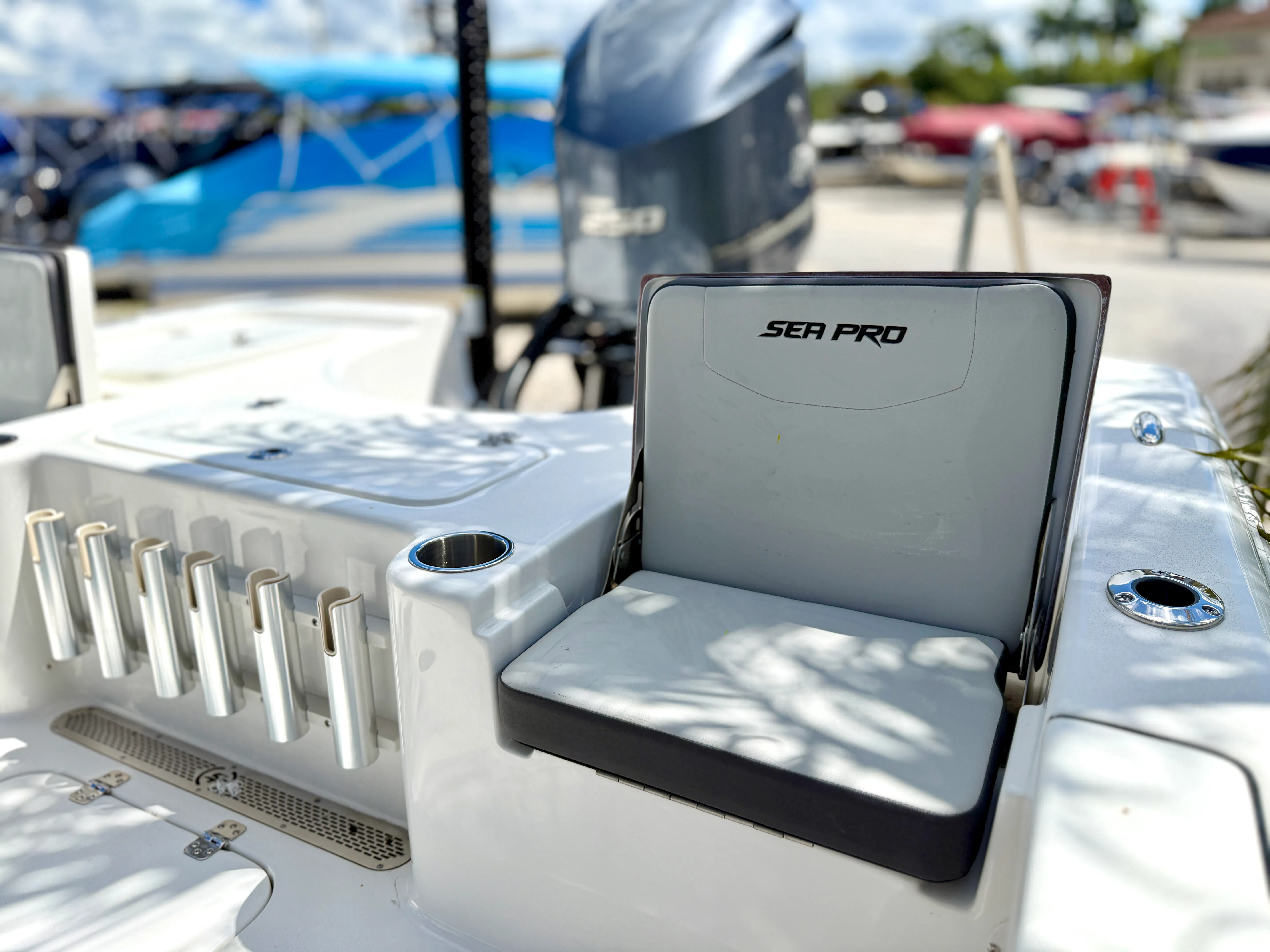 In summary, the 2025 Sea Pro 230 DLX Center Console is a top-tier choice for anyone seeking a new Center Console boat for sale. With its powerful Yamaha F250XB engine, stylish white hull and charcoal powder coat, luxurious platinum upholstery, T-Top, deluxe leaning post, larger console, forward seating, and Power Pole 10' (Strb), this Sea Pro boat for sale offers the perfect blend of performance, comfort, and versatility. Whether you’re an avid angler, a family boater, or someone who loves entertaining on the water, the Sea Pro 230 DLX is designed to exceed your expectations. Discover the excitement and freedom of owning this exceptional Center Console—contact your dealer today to learn more and make the Sea Pro 230 DLX yours.