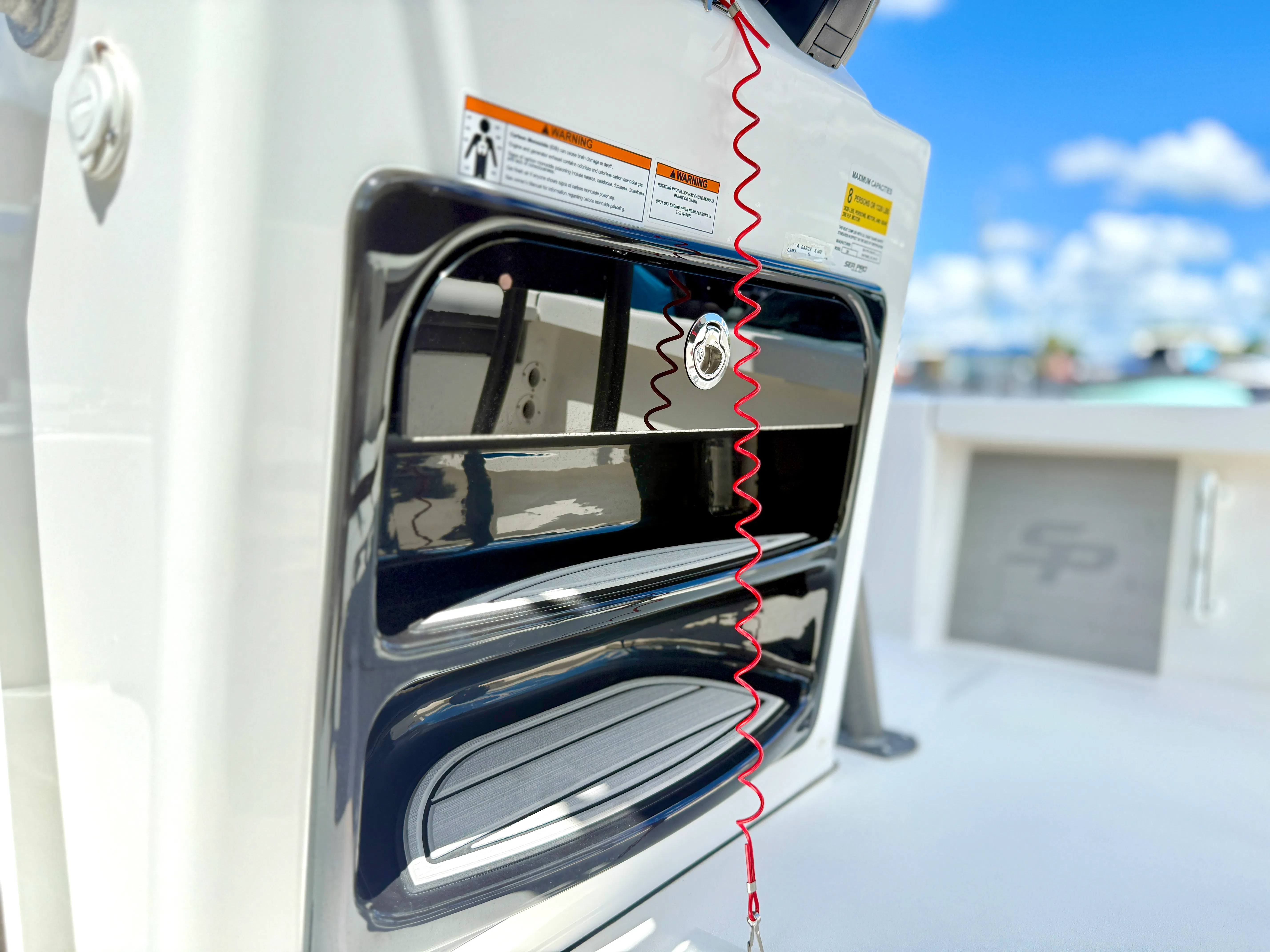 The Sea Pro 230 DLX is loaded with special features that set it apart from other Center Console boats for sale. The hull’s white color is complemented by a charcoal powder coat, giving the boat a sophisticated and modern look. The platinum upholstery adds a touch of luxury and comfort, ensuring that every passenger enjoys a premium experience. The T-Top provides essential shade and protection from the elements, making long days on the water more enjoyable. The deluxe leaning post and larger deluxe console offer enhanced ergonomics and storage, while forward seating creates a welcoming space for relaxation or socializing. For anglers, the Power Pole 10' (Strb) in black is a valuable addition, offering superior anchoring capabilities for fishing in shallow waters. Every detail of the Sea Pro 230 DLX has been thoughtfully designed to maximize comfort, convenience, and functionality.