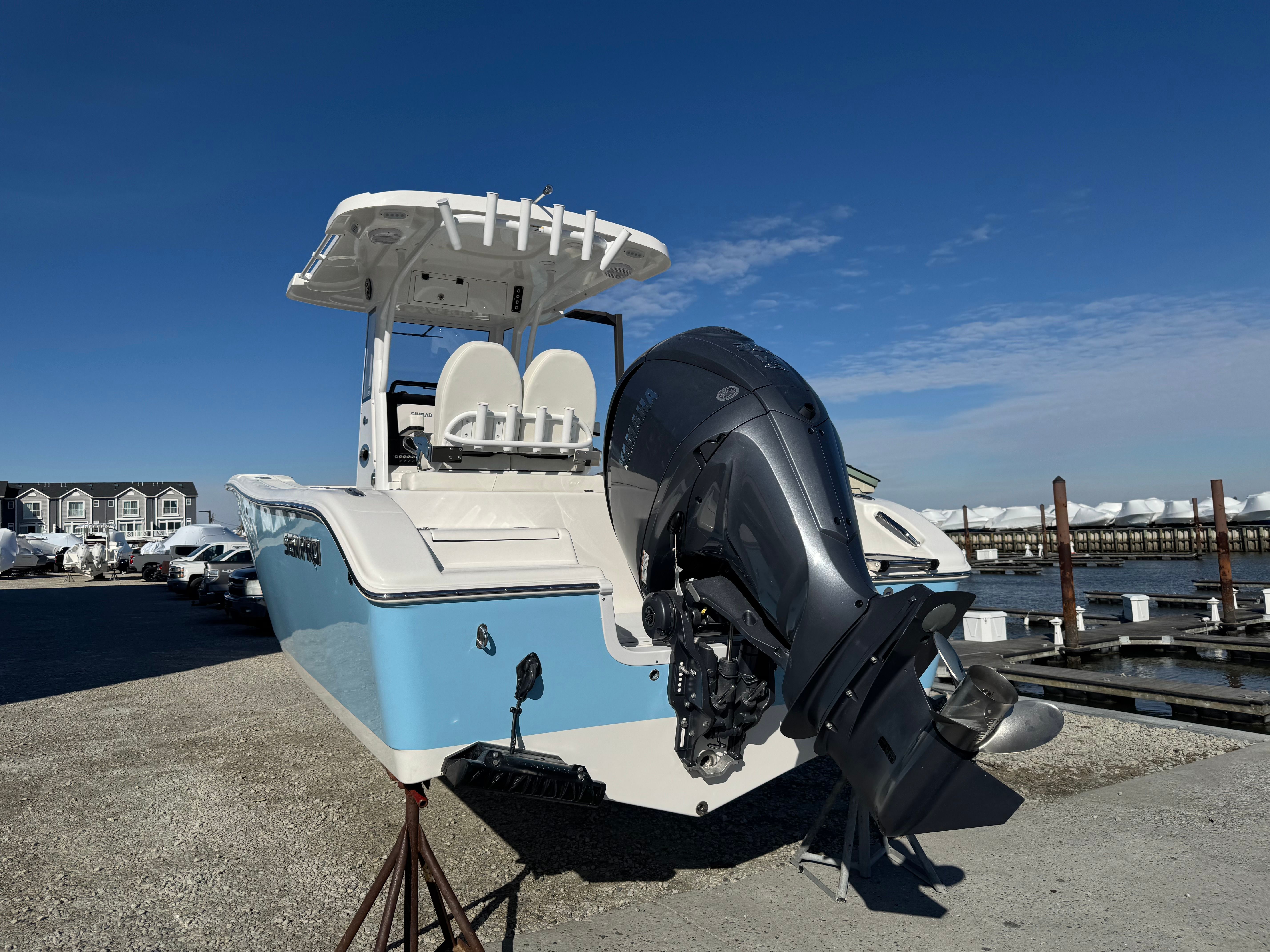 The 2026 Sea Pro 242 DLX Center Console is a standout choice for anyone seeking a new Center Console boat for sale. With its powerful 300 HP engine, striking Carolina Blue hull side color, versatile bow seating with removable backrest and table, complete bolster package, titanium helm pad, protective canvas covers, VHF Radio RS20, and wireless phone charger/holder, this Sea Pro boat for sale offers the perfect blend of performance, comfort, and style. Whether you’re a seasoned boater or new to the world of boating, the 242 DLX promises endless fun, relaxation, and adventure. Don’t miss your chance to own this exceptional vessel—contact the dealer today to learn more and start your next boating journey.