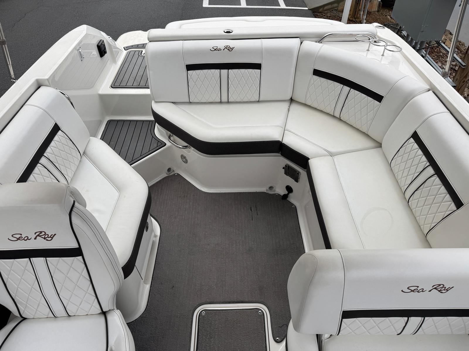 This Sea Ray SLX 230 is loaded with features that enhance both comfort and functionality. The bowrider layout provides spacious seating in the bow and cockpit areas, allowing guests to stretch out and enjoy the ride. The ergonomic helm is designed for ease of use, giving the captain full control and excellent visibility. Premium upholstery and high-quality materials throughout the boat create an inviting atmosphere, while the thoughtful design ensures that every inch of space is utilized efficiently.The SLX 230’s hull design contributes to a smooth, dry ride, even in choppy conditions. The integrated swim platform makes it easy to access the water for swimming or water sports, while the deep bow seating area is perfect for lounging and socializing. Storage compartments are strategically placed to keep gear organized and out of the way, so you can focus on having fun. The overall fit and finish of this Sea Ray boat for sale reflect the brand’s commitment to excellence and attention to detail.