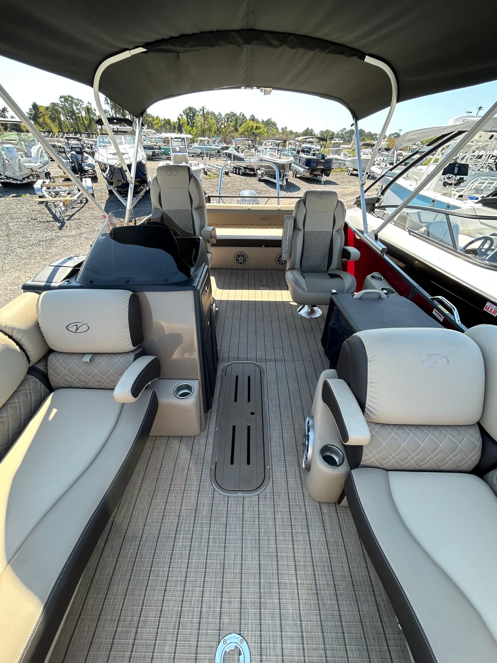 Powering this Veranda VR22VLC is a robust 200-horsepower engine, delivering an exhilarating ride every time you hit the throttle. With just one engine and only 15 hours of use, you can expect reliable performance and smooth operation for many seasons to come. The 200 HP engine provides plenty of power for cruising, towing water toys, or reaching your favorite fishing spot quickly and efficiently. Whether you’re gliding across calm lakes or navigating gentle rivers, this pontoon boat offers the perfect blend of speed, agility, and fuel efficiency, making every outing a pleasure.