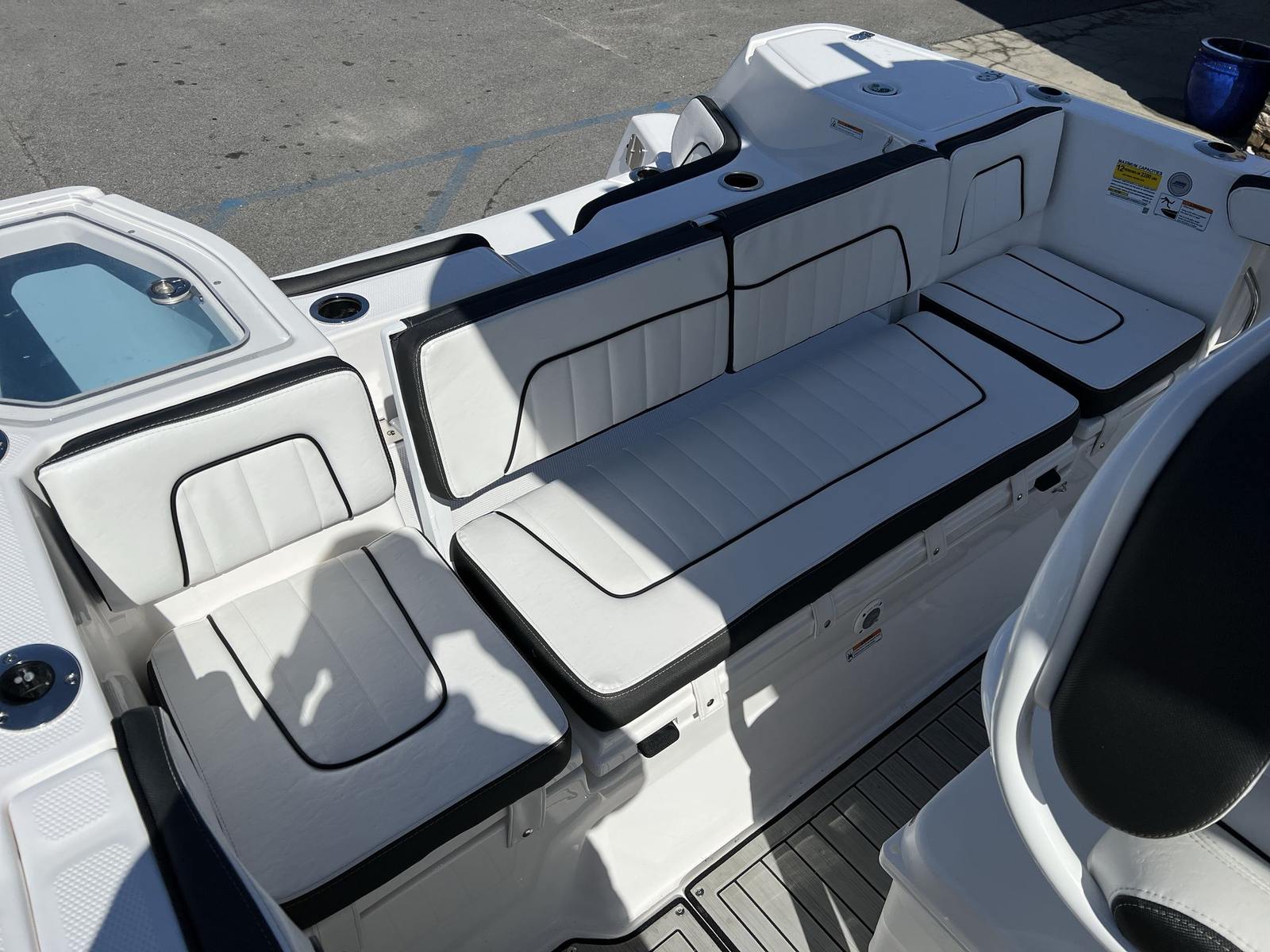 Beyond its impressive performance and entertainment value, the Yamaha 255 FSH Sport E offers a range of practical benefits that make ownership a pleasure. The jet propulsion system not only enhances maneuverability but also reduces the risk of damage from underwater obstacles, making it ideal for exploring shallow areas and unfamiliar waters. Docking is a breeze thanks to the precise control offered by the twin engines, allowing you to navigate tight spaces with ease.Storage solutions are thoughtfully integrated throughout the boat, providing ample space for gear, equipment, and personal items. This ensures that everything you need for a day on the water is within easy reach, keeping the deck clutter-free and organized. The efficient design of the Yamaha 255 FSH Sport E also contributes to fuel economy, allowing you to spend more time enjoying the water and less time refueling.